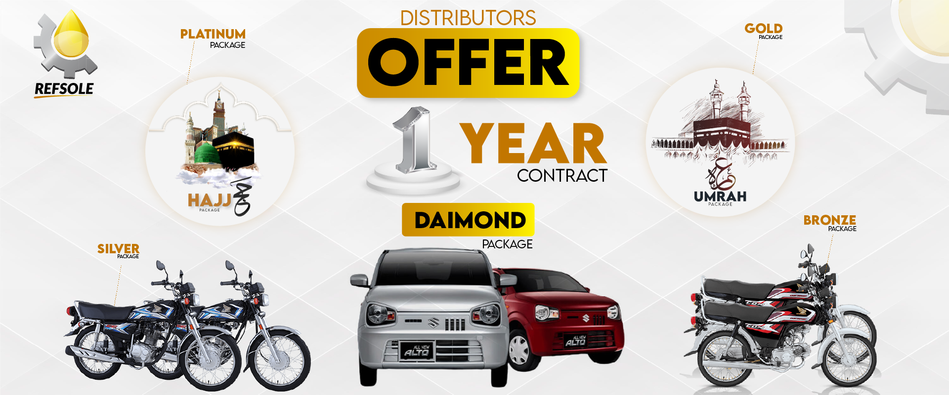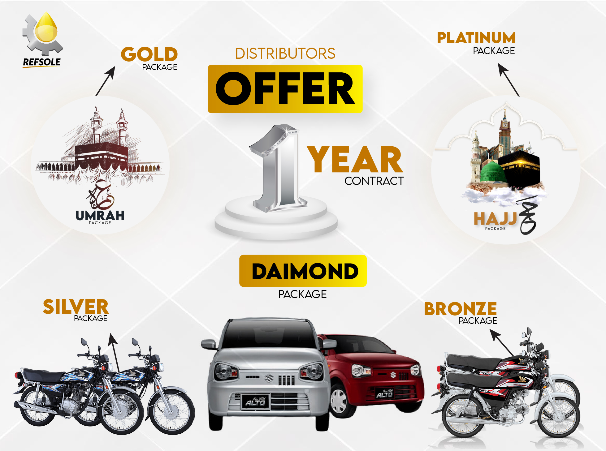 We deeply value our wholesale customers, and our “Gold” package reflects that appreciation. Purchase 300 cartons of our premium moterbiker engine oils and receive a complete Umrah package. This is a unique opportunity to gain significant inventory while fulfilling a spiritual aspiration. Contact us today to learn more about this exceptional offer.